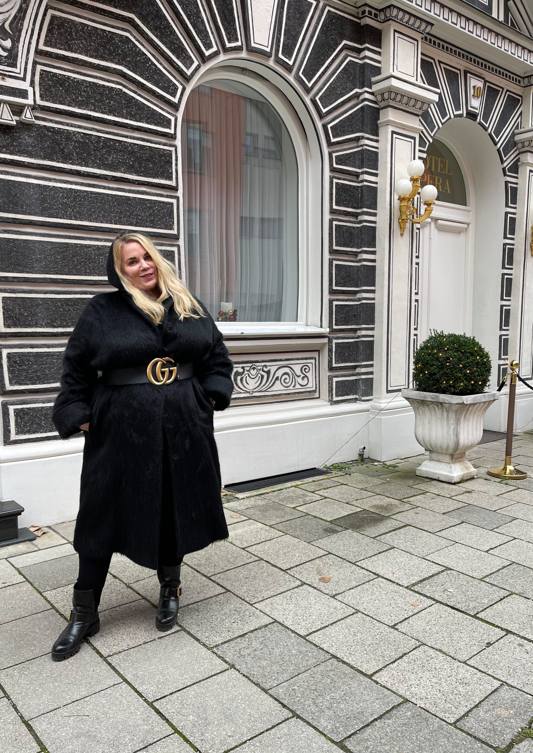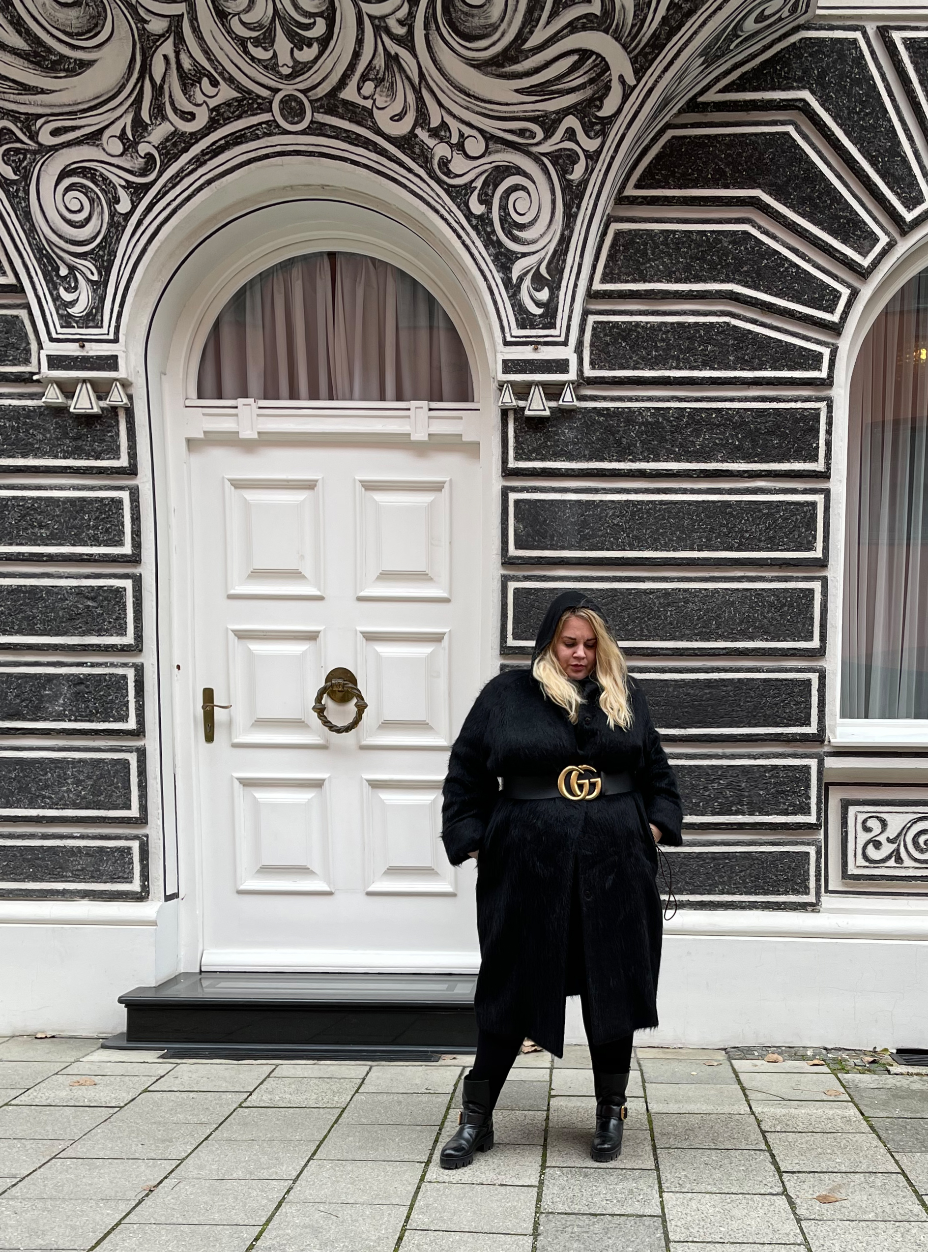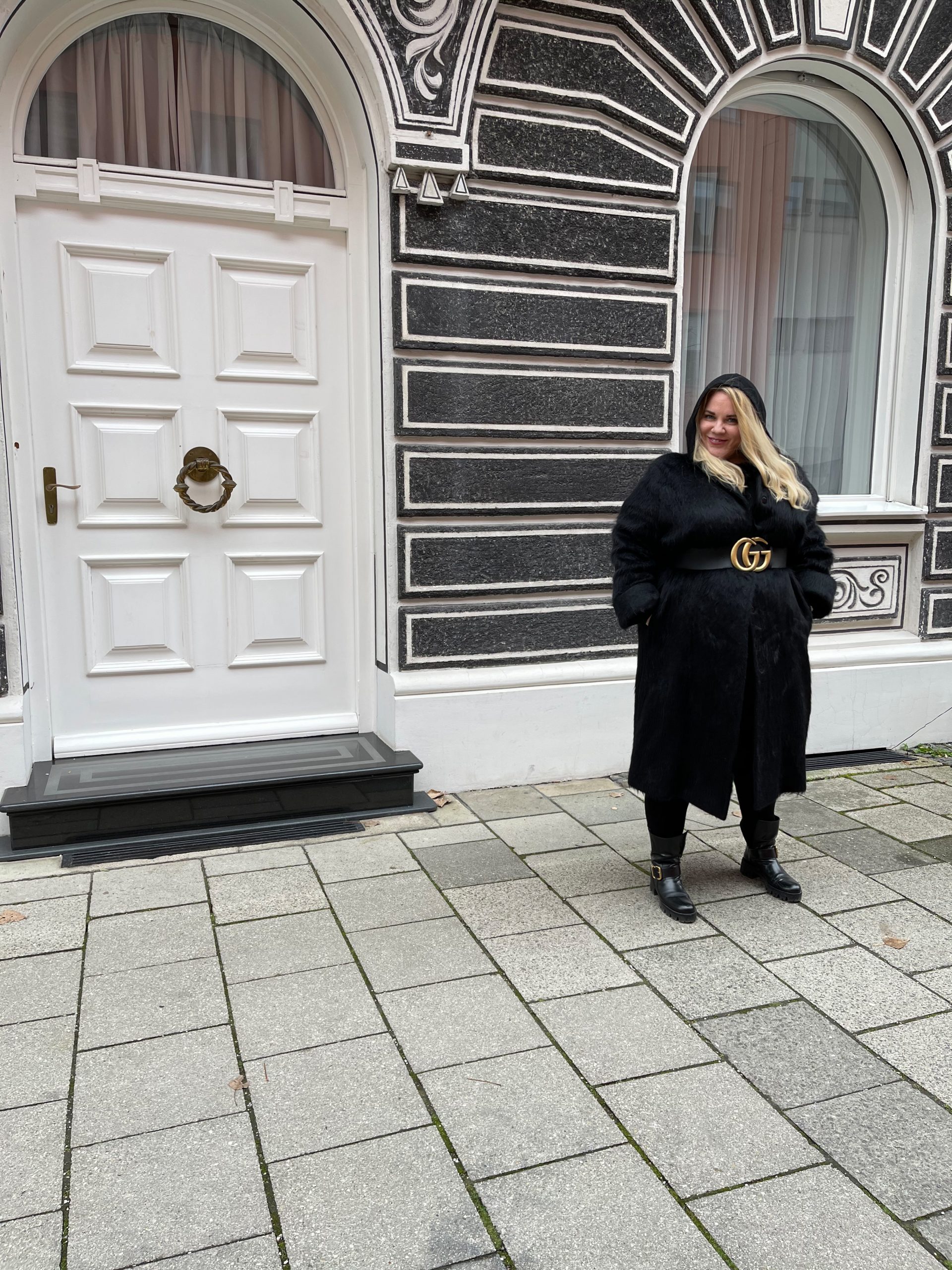 The alpaca-texture makes it all fully and warm. With this look, I decided to go edgier with a little fashion twist and wrap around a Gucci belt.