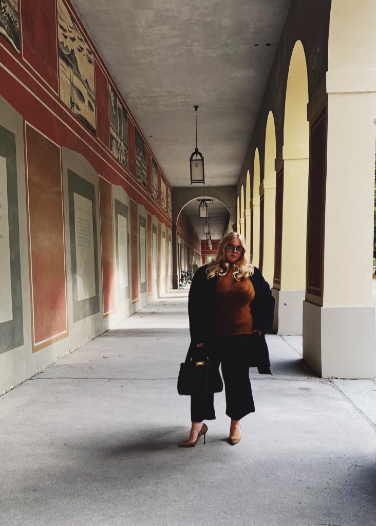 - Grab a good coat: Same as the blazer you should invest some money for a classy coat. I find many different ones by Marina Rinaldi like the classy camel coat. They are worth the money and will accompany you for years without being out of style which is sustainable.