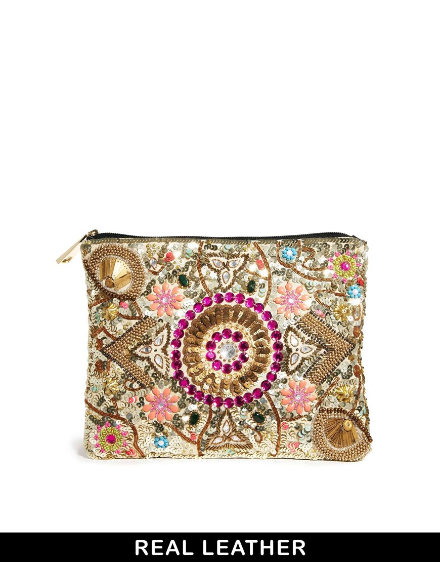 ASOS Leather Embellished Zip Top Clutch Bag, 57 EUR, asos.com